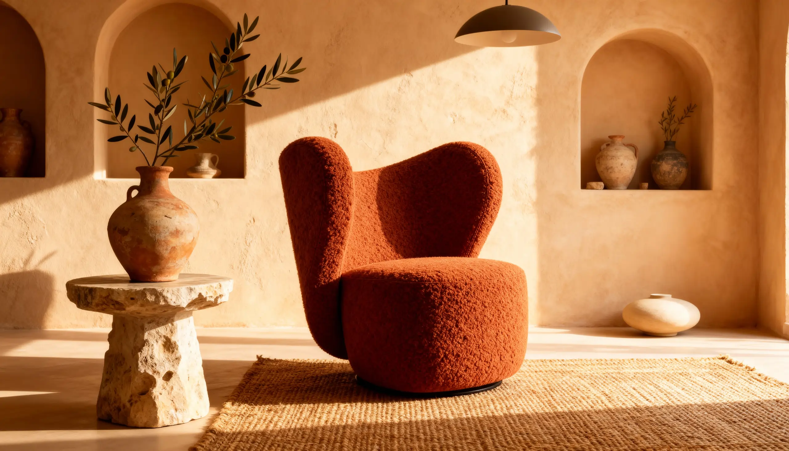 Теракотовий відтінок підкреслює природну філософію Kaizen: близькість до землі, тактильність і теплоту матеріалів. Крісло органічно поєднується з інтер’єрами в стилі мінімалізм, japandi, wabi-sabi та сучасна класика.