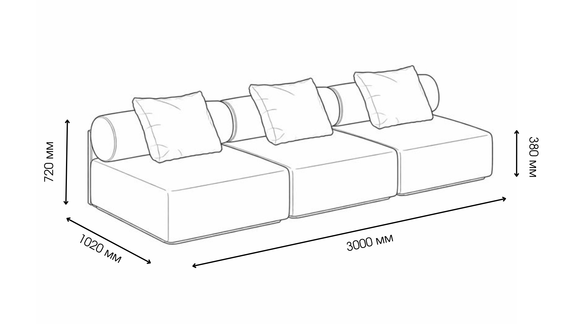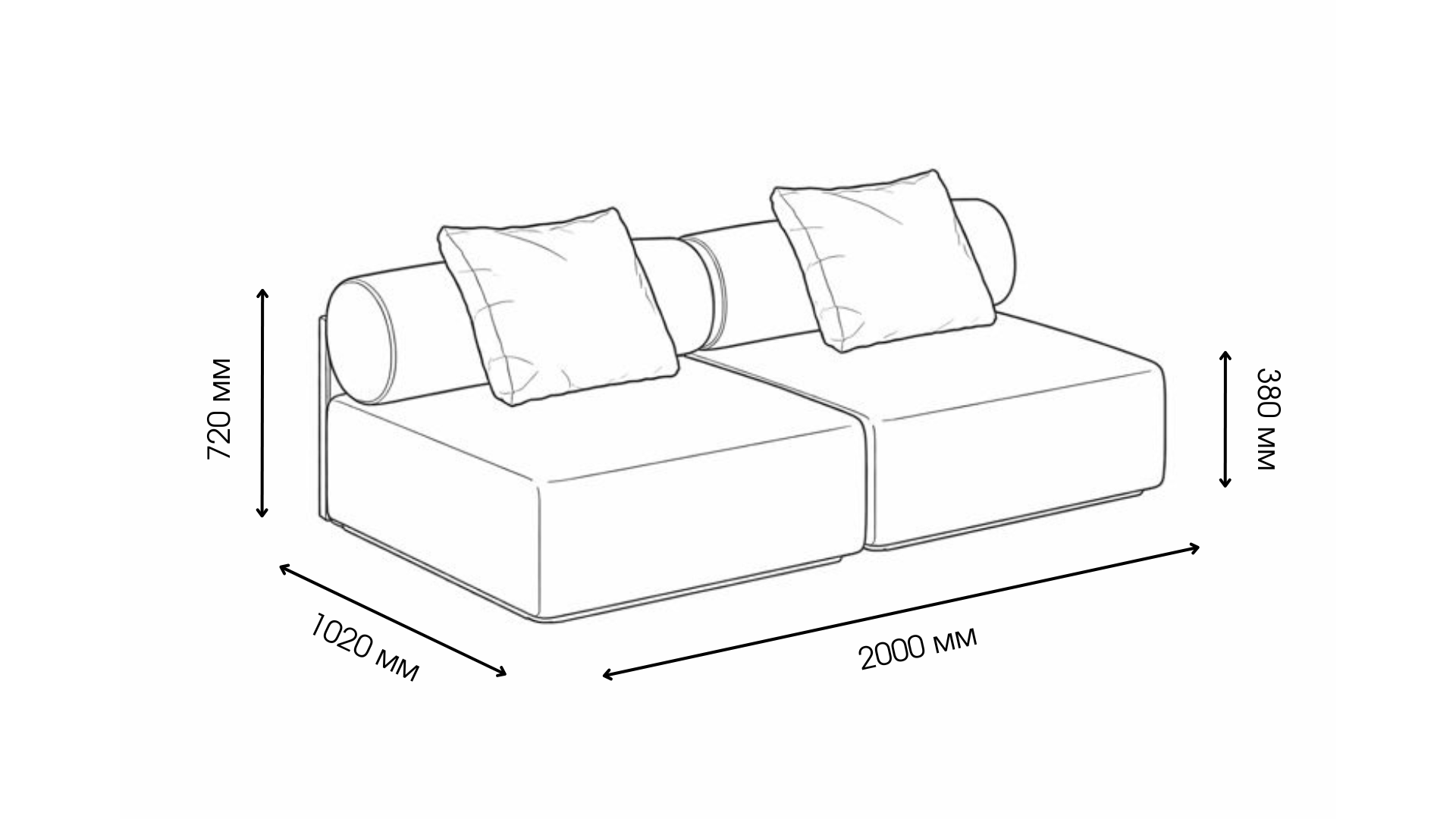 Квадратний модуль зі спинкою – Ш 1000 × Г 1020 × В 820 мм