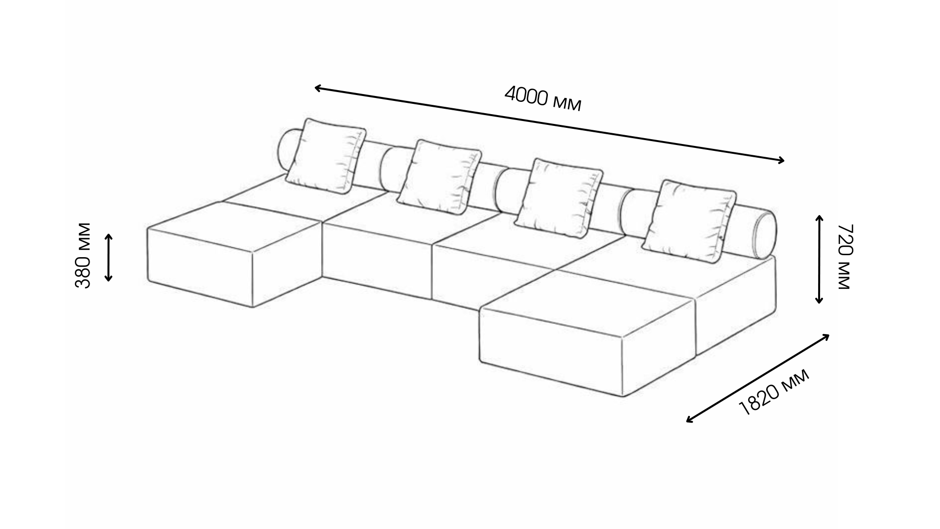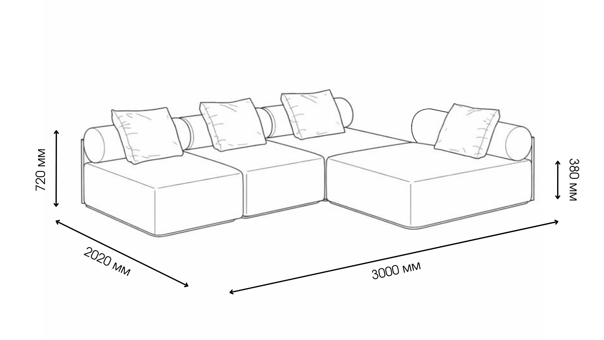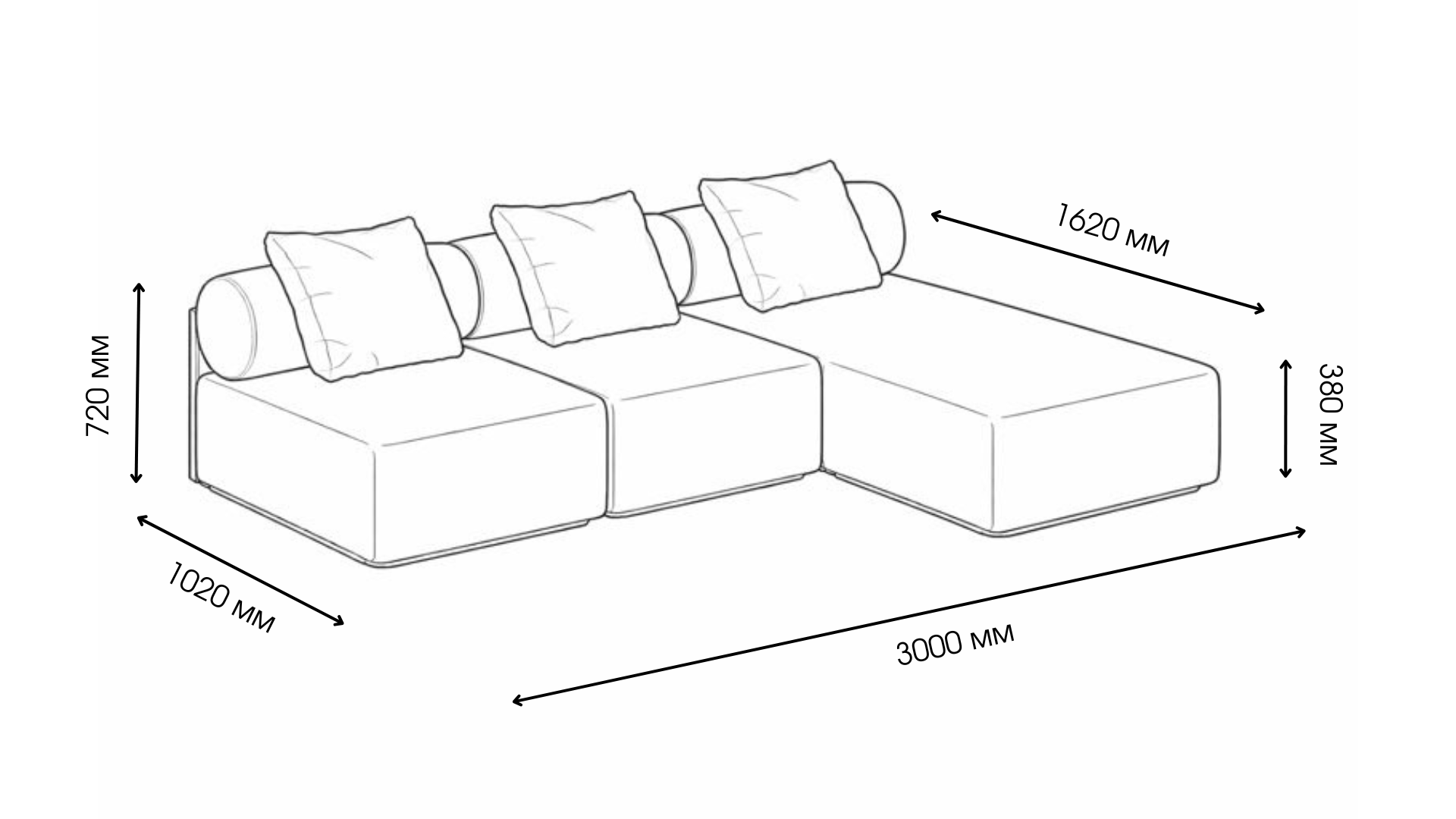 Подовжений модуль («Крокодил») зі спинкою – Ш 1000 × Г 1620 × В 820 мм